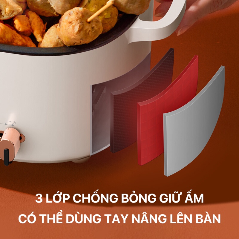 Lòng nồi sâu 2L có thể dễ dàng điều khiển bữa tiệc lẩu nhiều người,