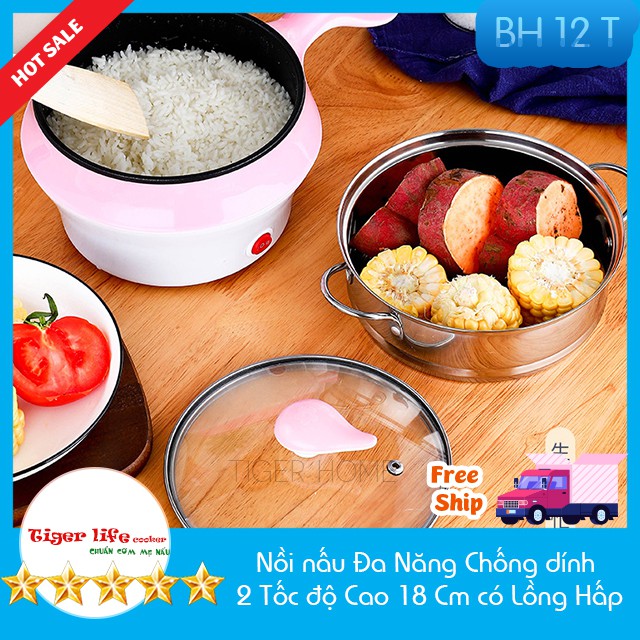 Nồi Nấu, Hấp, Chiên, Xào, Nấu mỳ Đa năng 2 tầng Chống Dính 18cm TIêu Chuẩn Châu Âu Ổ cắm 2 Chấu 2 TỐC ĐỘ An toàn Bền Bỉ