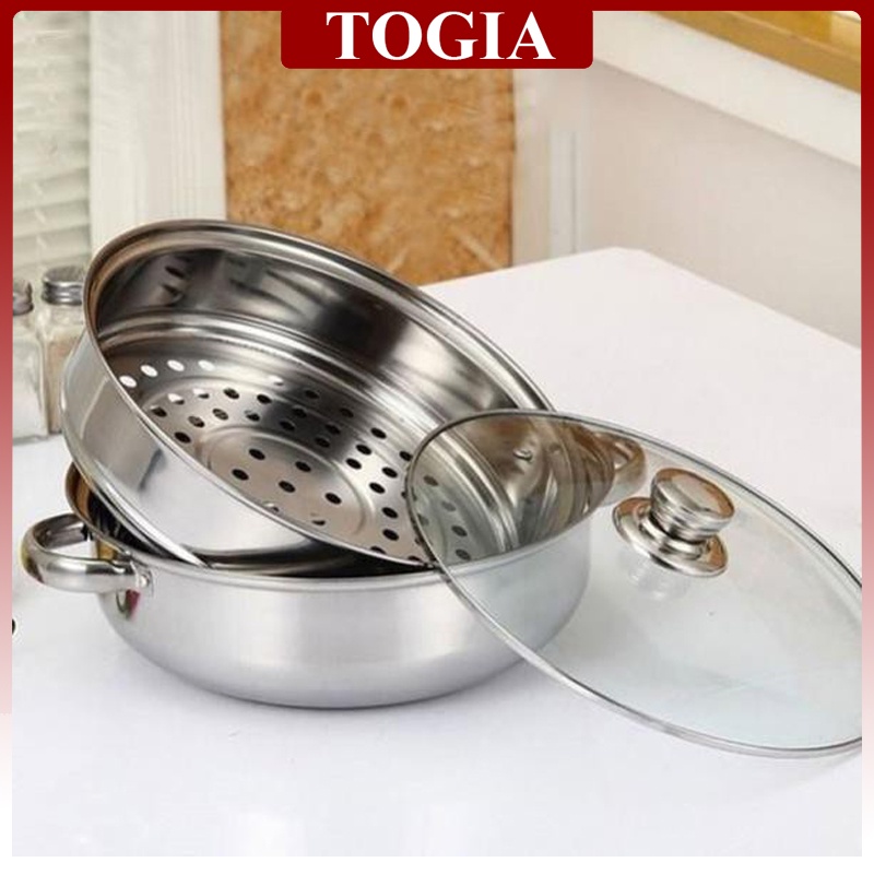 Thiết Bị Điện Gia Dụng > Đồ gia dụng nhà bếp > Nồi nấu đa năng || Nồi Nấu Hấp Thực Phẩm 2 Tầng Vung Kính Dùng Được Cho Bếp Từ Size 28cmCòn hàng