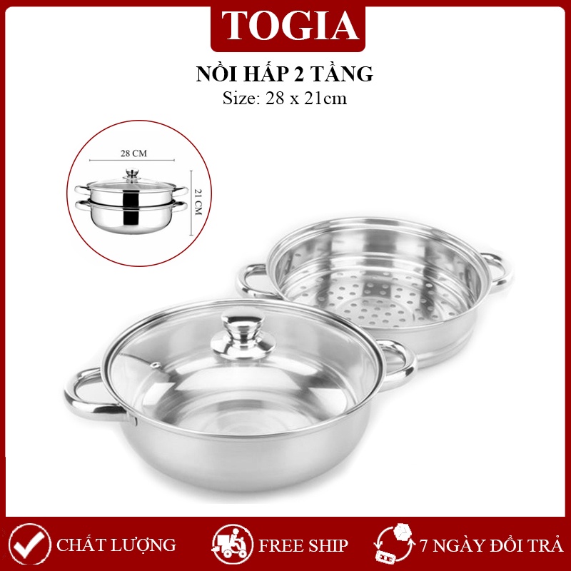 Nồi Nấu Hấp Thực Phẩm 2 Tầng Vung Kính Dùng Được Cho Bếp Từ Size 28cm✅ Mô tả sản phẩm