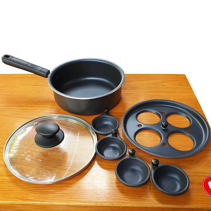 🍳 Nồi nấu hấp trộn chống dính đa năng có thiết kế vỉ hấp với 4 chén nhỏ có thể dùng để hấp trứng, làm chén nước chấm, chén đựng gia vị tiện dụng.