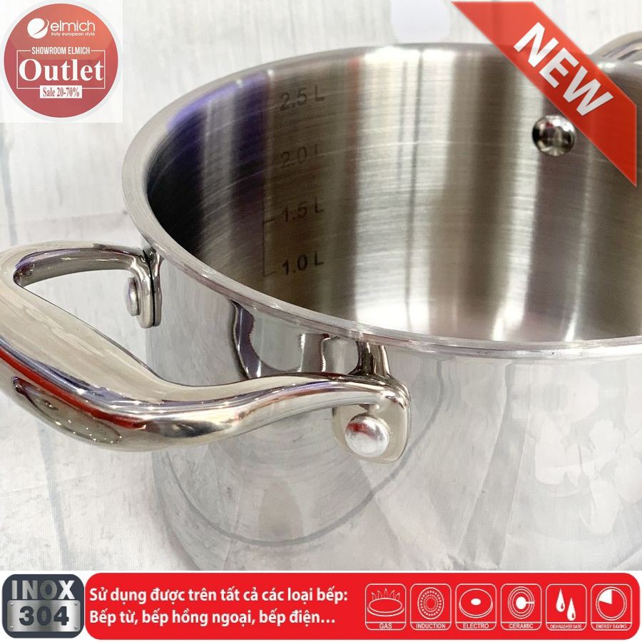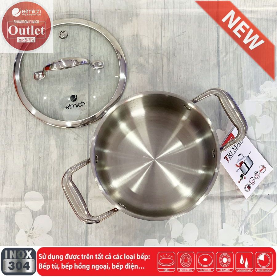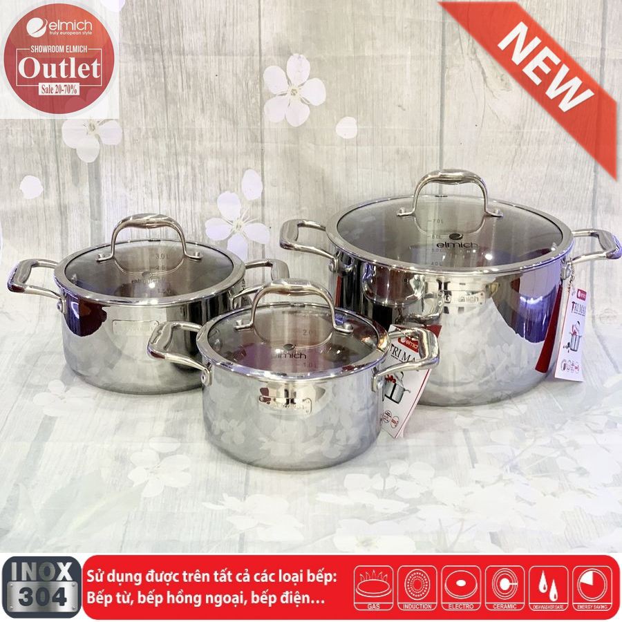 Nhà cửa & Đời sống > Dụng cụ nhà bếp > Nồi || Nồi Nấu Inox 304 3 lớp Đáy Liền ELMICH TriMaxXS 18/20/24/26/28Còn hàng