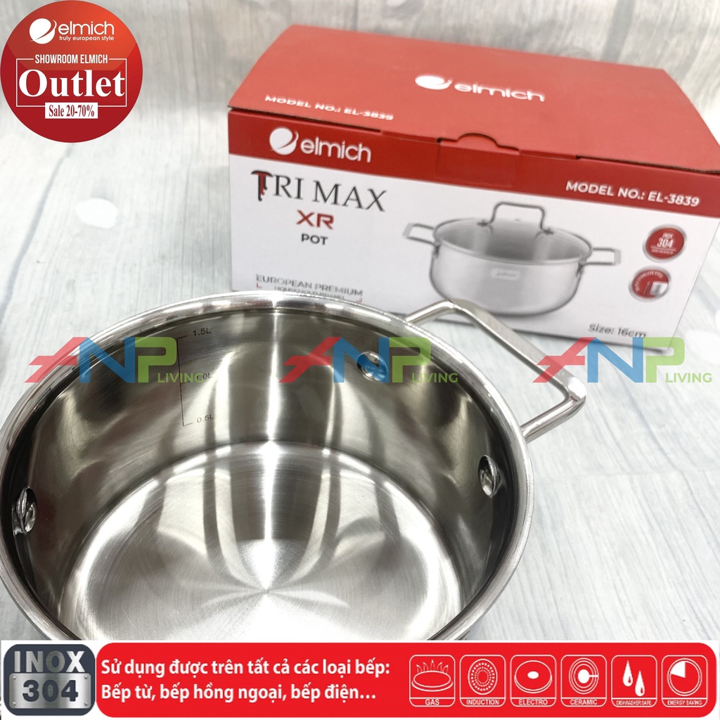 Nhà cửa & Đời sống > Dụng cụ nhà bếp > Nồi || Nồi Nấu Inox 304 3 lớp Đáy Từ ELMICH Tri-Max XR 3839 Size 16cmCòn hàng