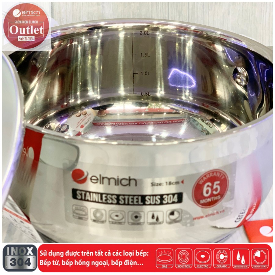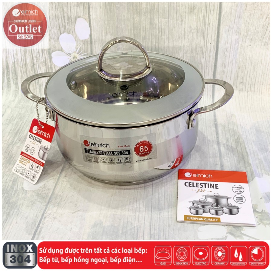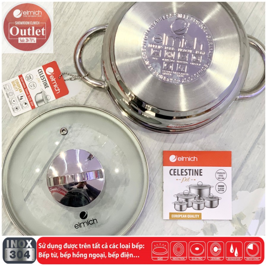 Nồi Nấu Inox 304 5 lớp Đáy Từ ELMICH Celestin 5275 18cm/5276 20cm/5277 22cm/5278 24cm/5279 28cm