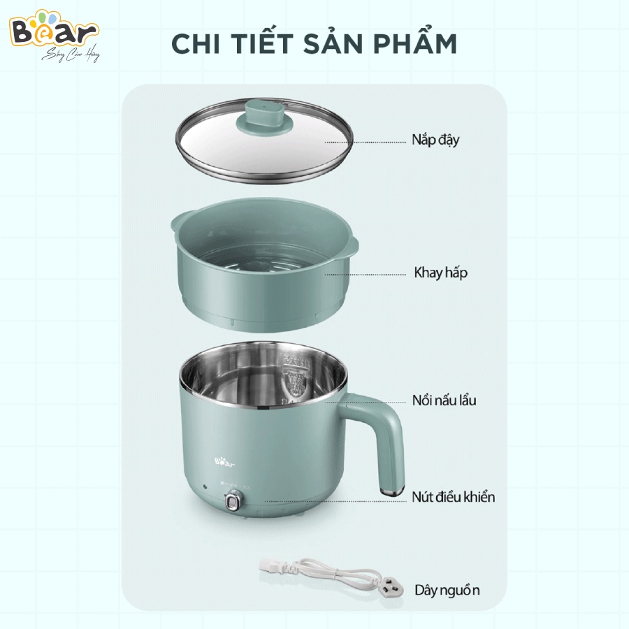 Giới thiệu Nồi nấu Lẩu Mini Điện Đa Năng Bear Nhỏ Gon Hai Tầng Có Hấp -HiMect