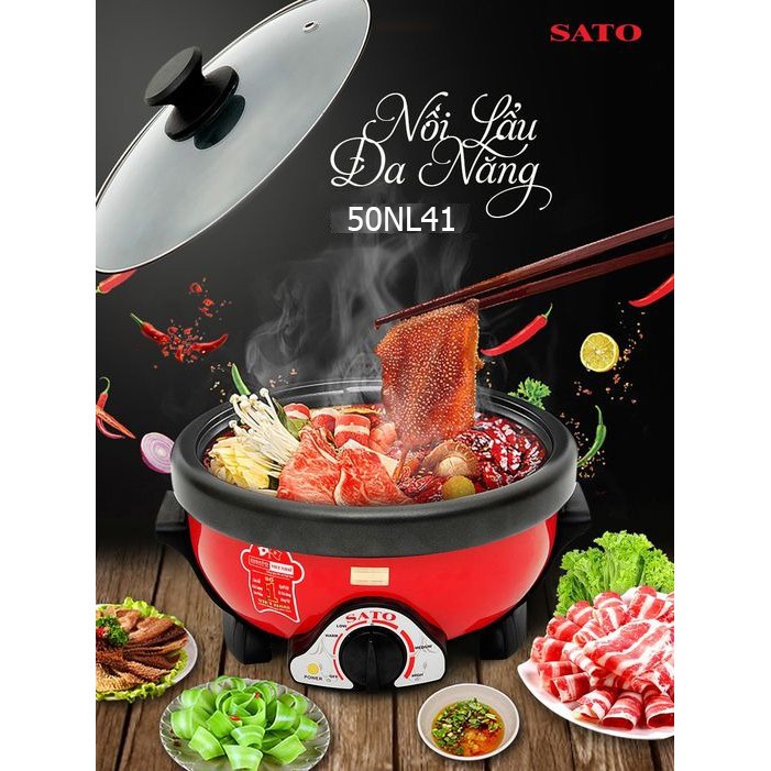 Giới thiệu Nồi nấu lẩu,Nồi lẩu điện đa năng SATO 35NL31 Lẩu, Chiên. Xào, luộc... Dung Tích 5L/ 3.5L, bảo hành 12 tháng.