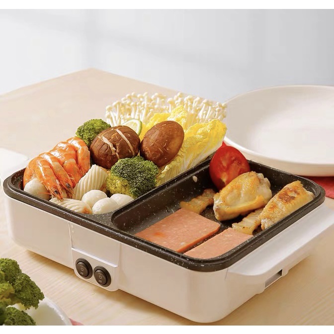 Giới thiệu Nồi Nấu Lẩu Nướng 2 Ngăn Mini Hàn Quốc Nồi Lẩu 2 in 1 Đa Năng Chống Dính Tiện Lợi