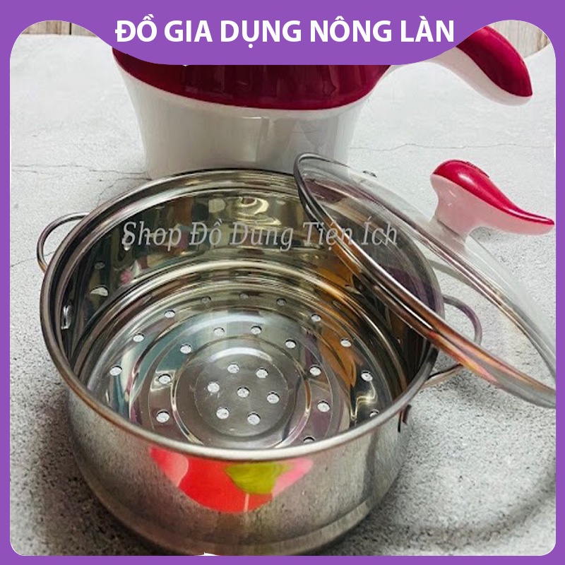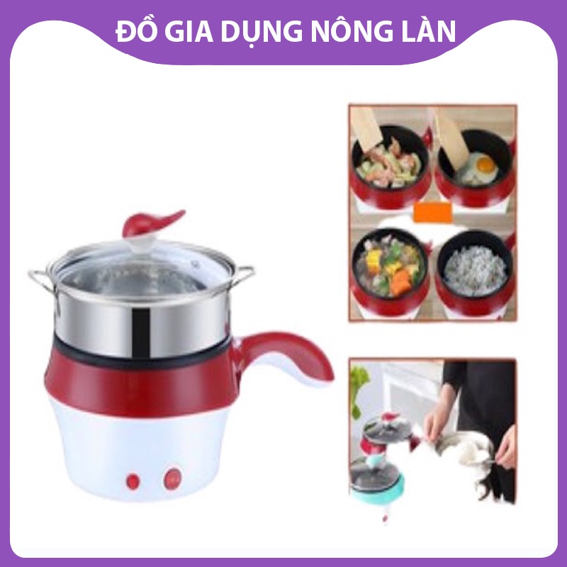 Nồi nấu mì mini có tay cầm NL Shop, nồi hấp 2 tầng, ca nấu siêu tốc đa năng, ca nấu mì bằng điện không khói