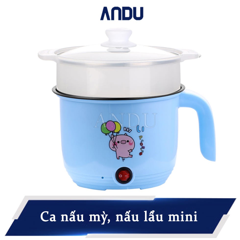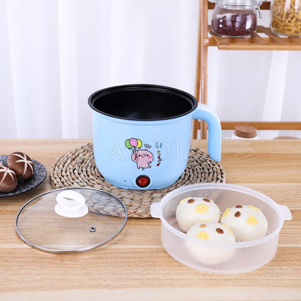 Ca Nấu Mì, Nấu Cơm Đa Năng Tiện Dụng Có Tay Cầm 1,8L - Nồi Lẩu Điện Mini Kèm Giá Hấp