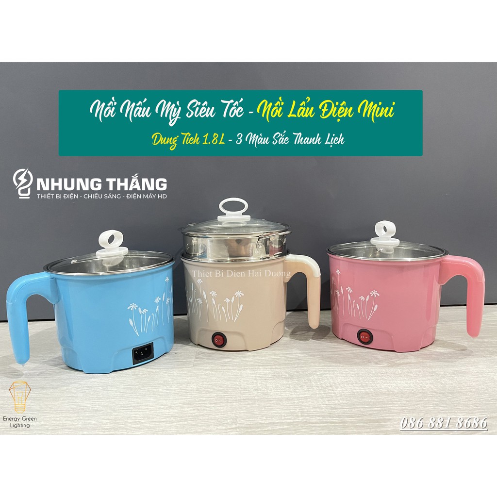 Ca Nấu Mì, Nấu Cơm Đa Năng Tiện Dụng Có Tay Cầm 1,8L - Nồi Lẩu Điện Mini Kèm Giá Hấp