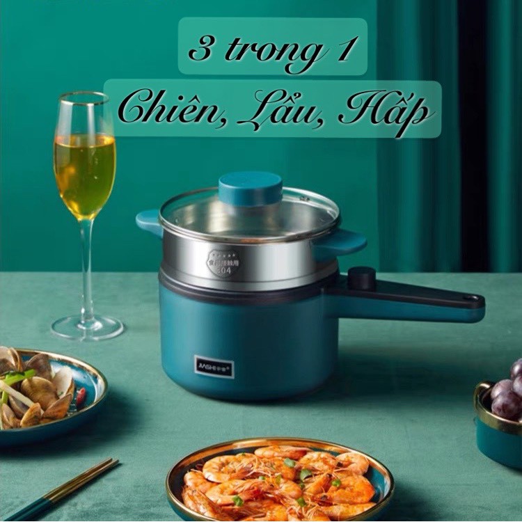 Nồi nấu mini đa chức năng tất cả trong một nồi lẩu điện nhỏ thiết bị gia dụng gia đình ký túc xá lẩu, chiên điện 1.2 lít