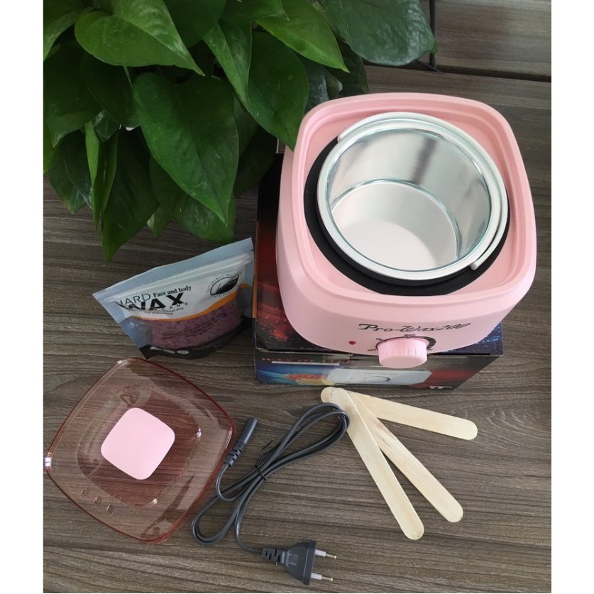 Bộ nồi nấu sáp wax lông cao cấp pro wax 200 nóng nhanh lòng nồi rộng Kèm 100gr sáp Tặng que gỗ