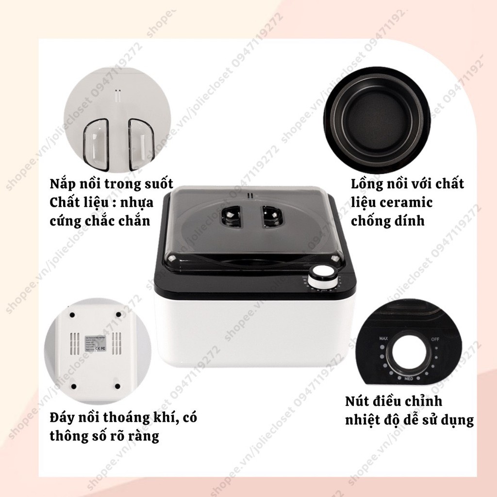 * Lòng nồi thiết kế chống dính, dễ dàng bóc đi lớp sáp thừa sau khi sử dụng.