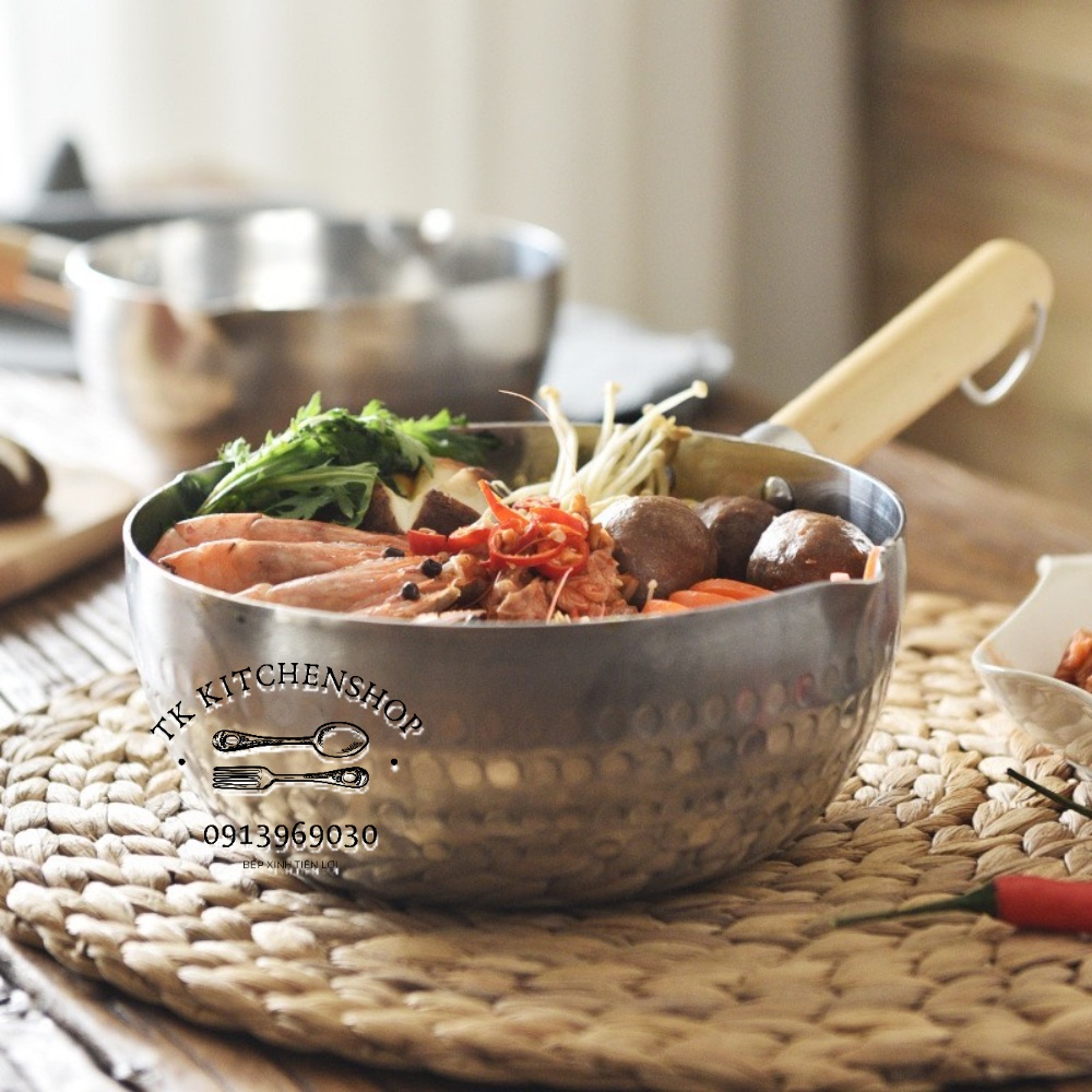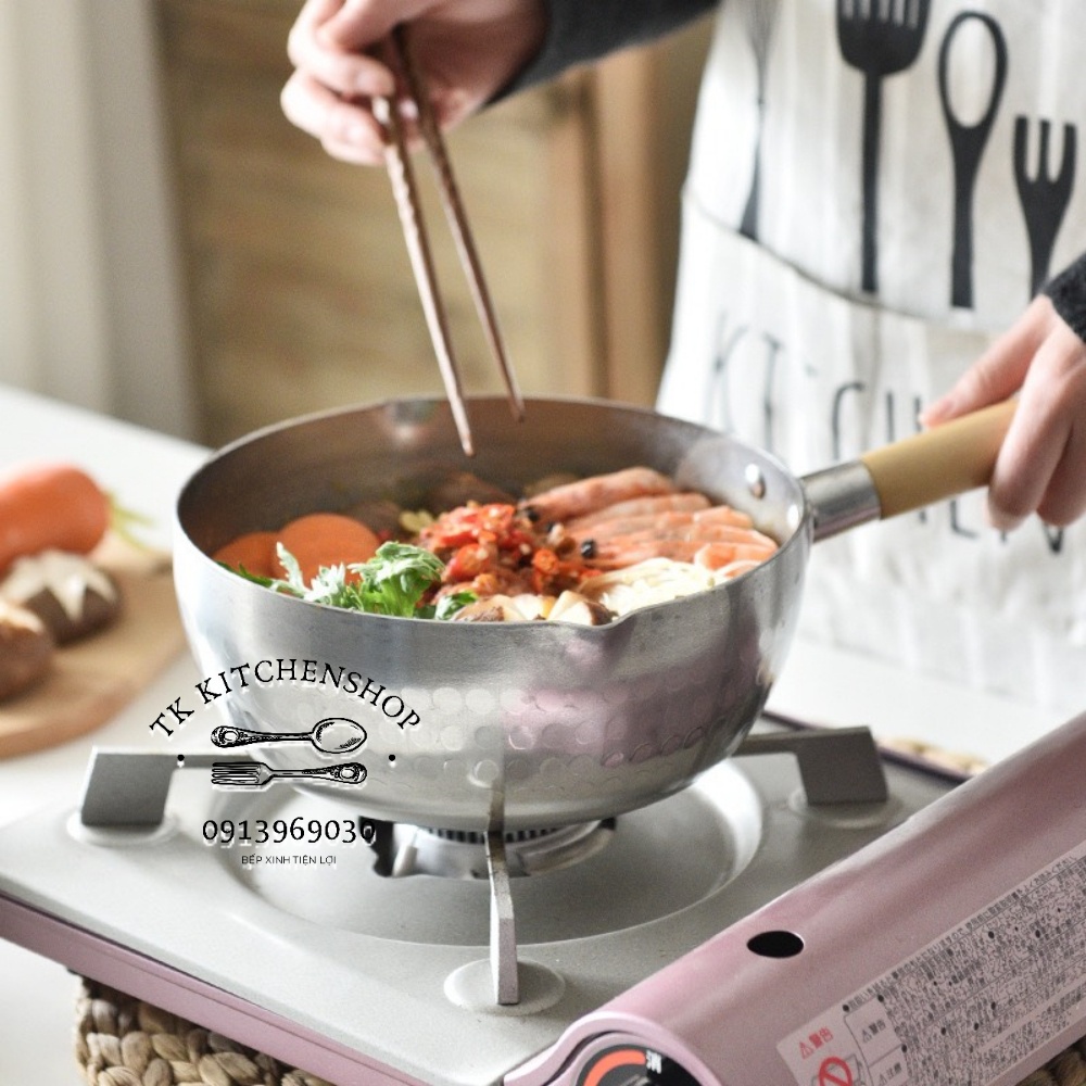 Nồi nấu súp cháo bằng nhôm có tay cầm cán gỗ cách nhiệt,chất liệu nhôm nhập khẩu sáng bóng an toàn vệ sinh thực phẩm