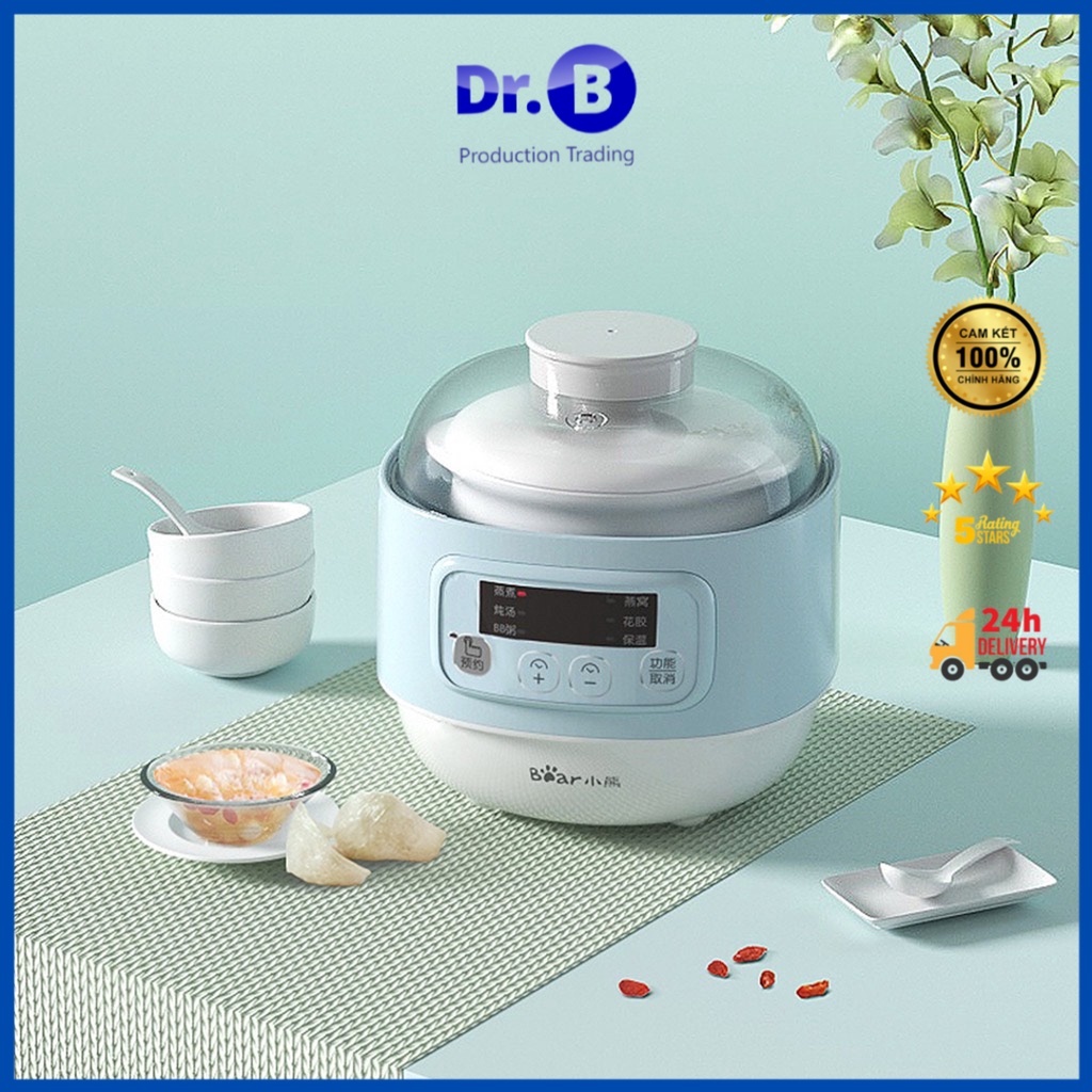 Nồi nấu thông minh đa năng Bear kèm xửng hấp nấu cách thủy 4 in 1 - Nồi nấu cháo,ninh, hầm, hấp tiện lợi