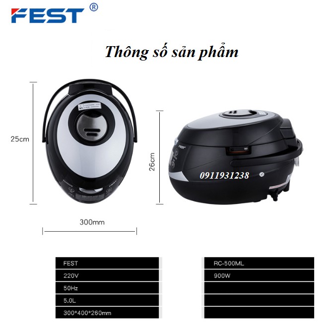 Nồi nấu trân châu tự động FEST RC - 500ML (tặng muôi với + ca đong 1 Lít, bảo hành 12 tháng)
