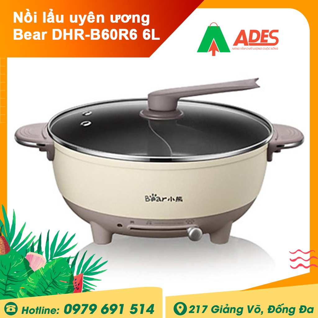 Nồi nẩu uyên ương Bear DHG-B60R6 6L - BẢN NỘI ĐỊA - Chính hãng Bảo hành 12 tháng - Nấu lẩu 2 ngăn - NEW 2021
