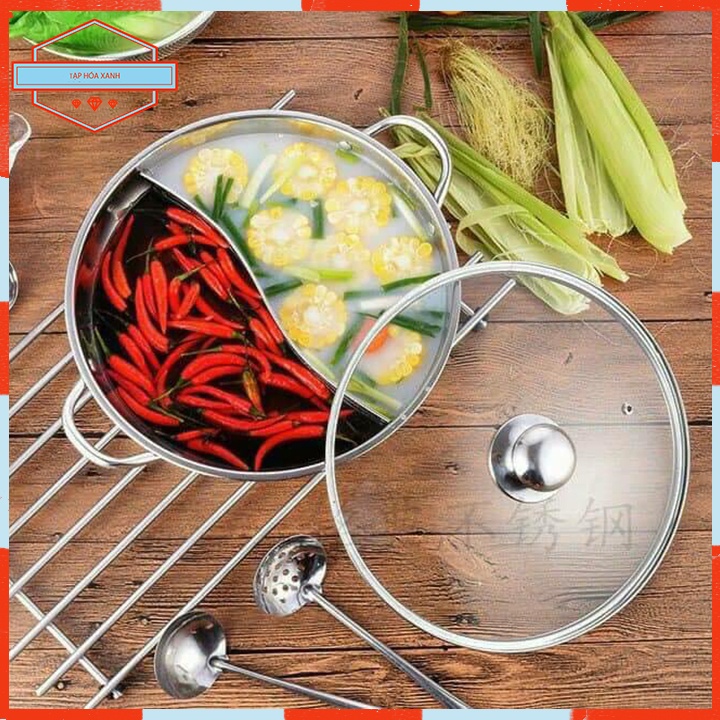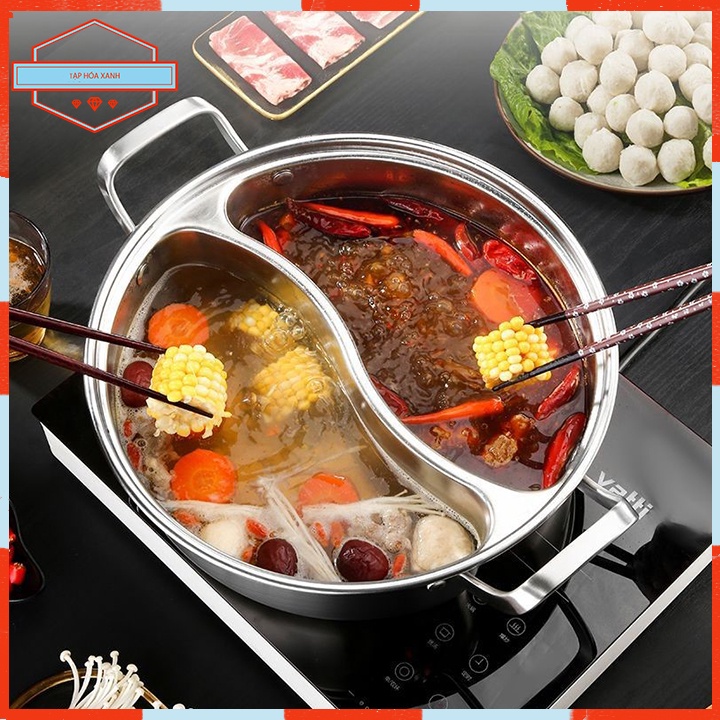 Bộ Nồi Nhà Bếp Cao Cấp Nồi Lẩu Inox 2 Ngăn 32cm Tiện Lợi Tạp Hóa Xanh