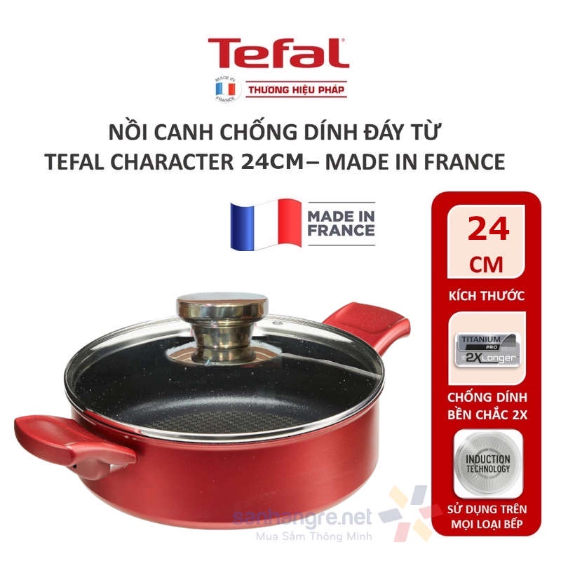 Nồi nhôm chống dính đáy từ thành thấp Tefal Character 24cm C68270 Made in France tặng vung kính LyncenSản phẩm: Nồi lẻ 2 quai cầm thấp thành