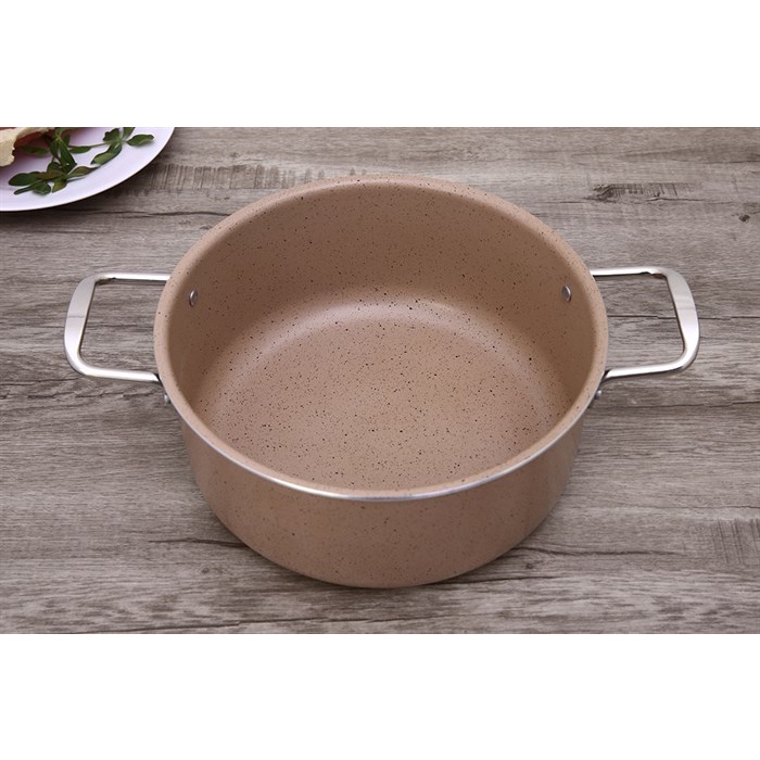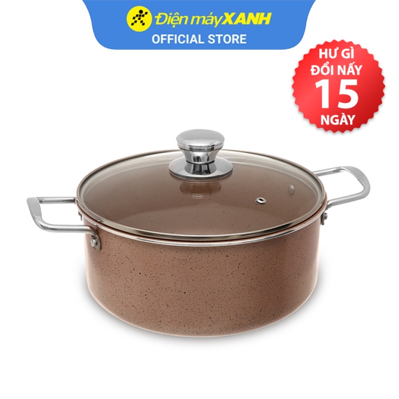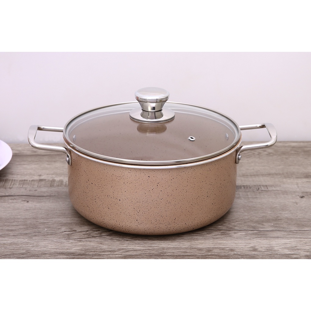 Thiết kế hiện đại, mặt ngoài phủ vân đá sang trọng, màu sắc nổi bật đẹp mắt, thân nồi bằng nhôm A3003 cao cấp bền bỉ.