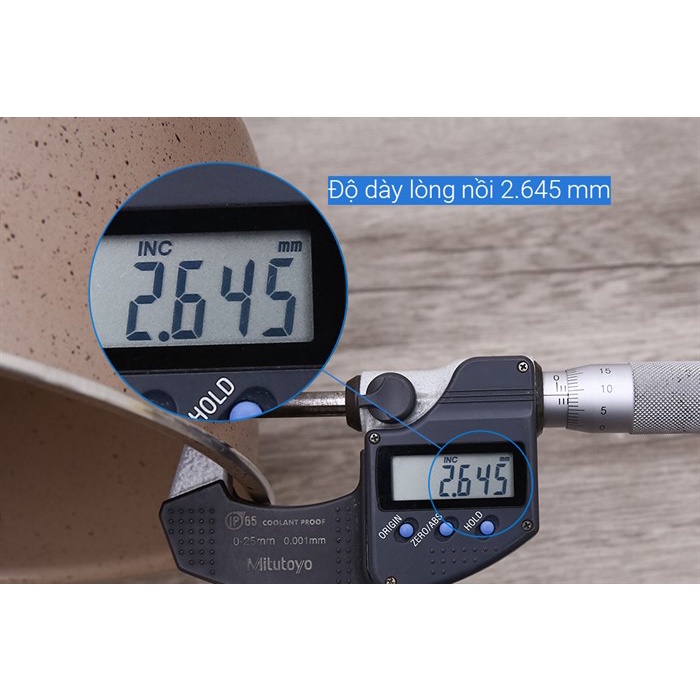 Độ dày thành nồi 2.645 mm chống móp méo tốt, cho khả năng giữ nhiệt lâu giúp nấu ăn nhanh hơn, thức ăn ấm nóng thơm ngon cho bữa ăn gia đình.