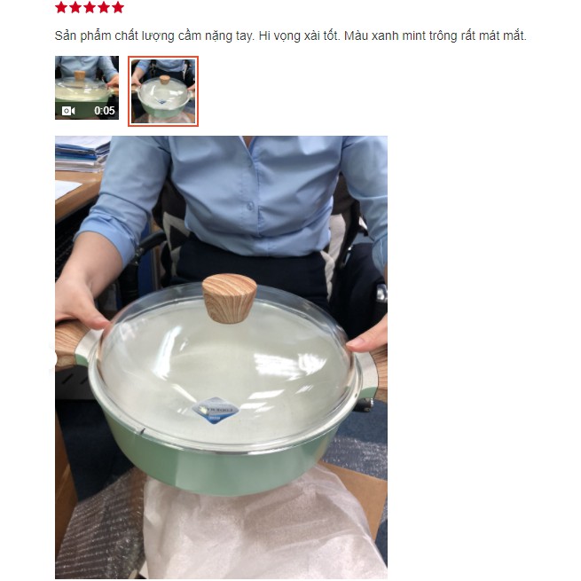 - Tay cầm bằng nhựa bakelite giả gỗ không chỉ cách nhiệt mà còn mới lạ, thời trang, tinh tế và thẩm mỹ, giúp bạn sử dụng thoải mái, mang lại niềm vui khi nấu ăn tại nhà.