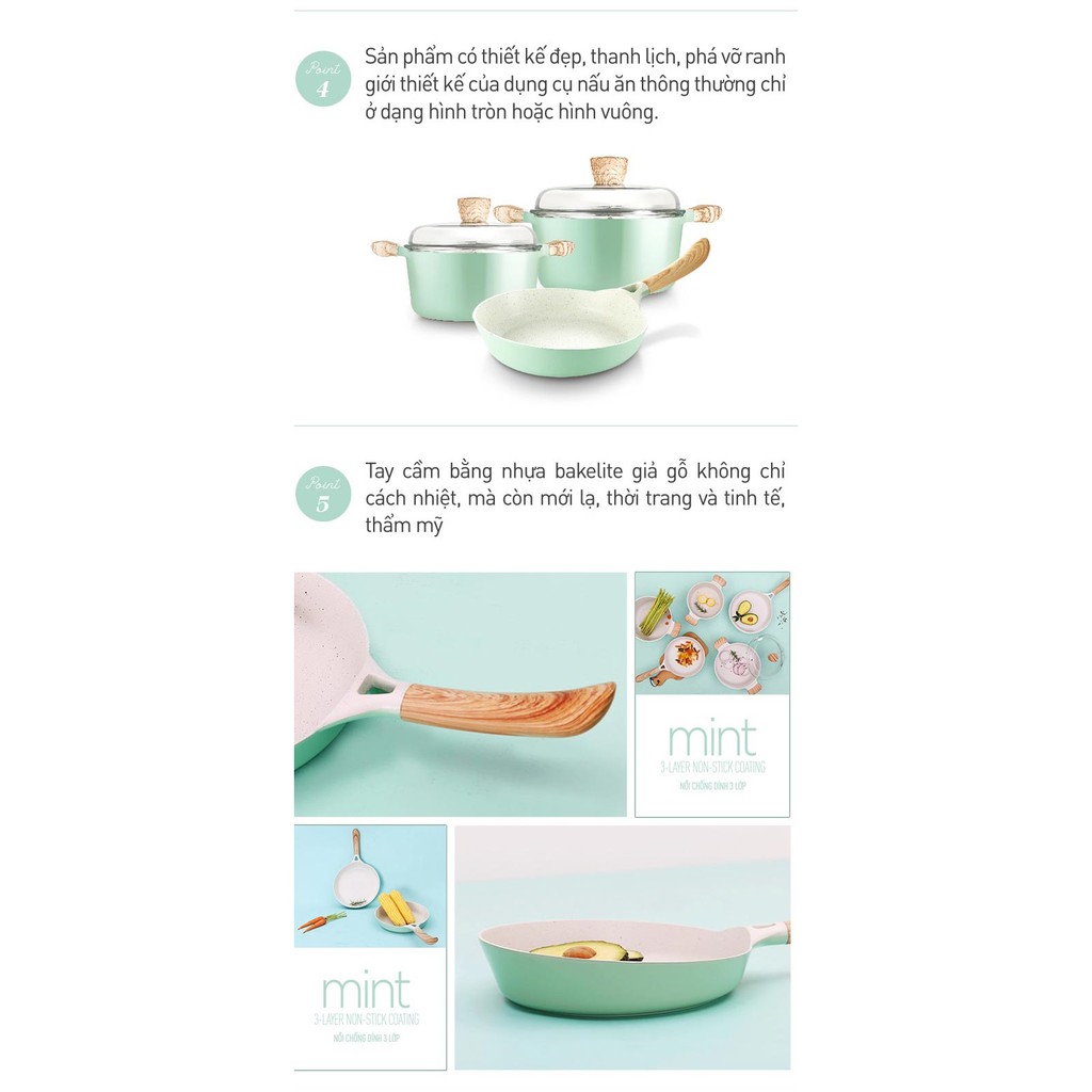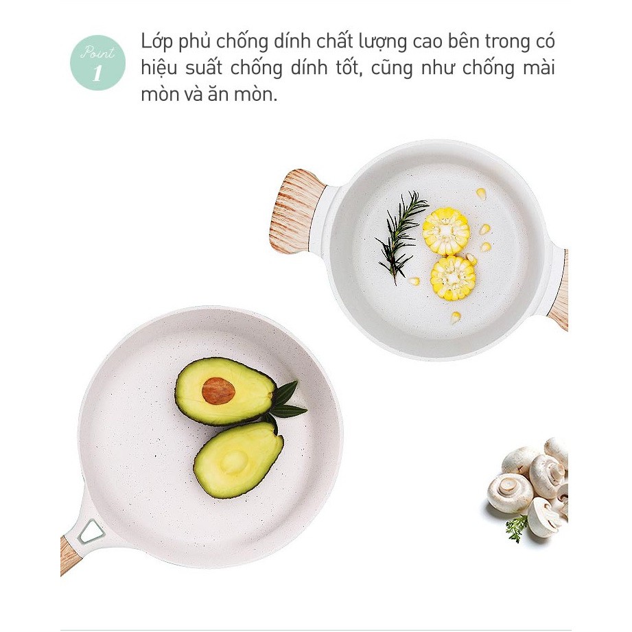 Tay cầm bằng nhựa bakelite giả gỗ không chỉ cách nhiệt mà còn mới lạ, thời trang, tinh tế và thẩm mỹ, giúp bạn sử dụng thoải mái, mang lại niềm vui khi nấu ăn tại nhà.