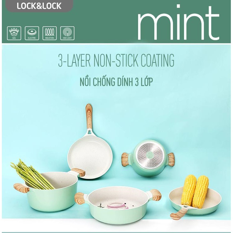 Nhà cửa & Đời sống > Dụng cụ nhà bếp > Nồi || Nồi Nhôm Chống Dính Nắp Thủy Tinh Lock&Lock CCA201 20cm/ CCA202 24cm/ CCA203 26cm - Màu MintCòn hàng