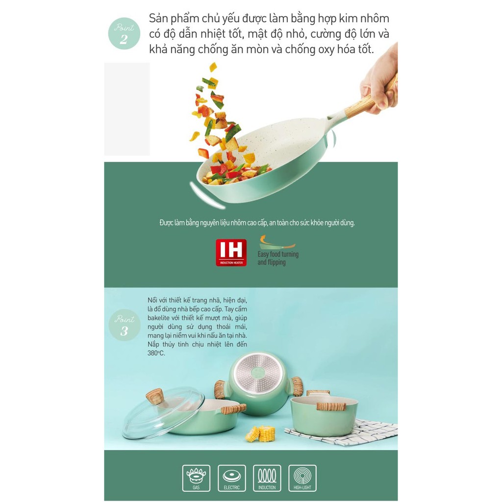 Giới thiệu Nồi Nhôm Chống Dính Nắp Thủy Tinh Lock&Lock CCA201 20cm/ CCA202 24cm/ CCA203 26cm - Màu Mint