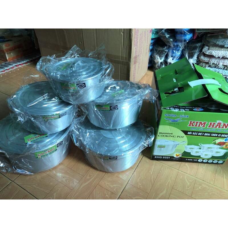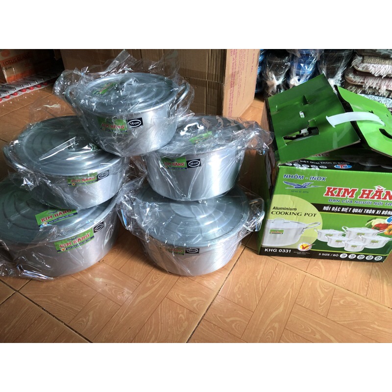 Nhà cửa & Đời sống > Dụng cụ nhà bếp > Nồi || Bộ nồi nhôm Kim Hằng 0331 gồm 5 cái size 16 18 20 22 24cm - Hàng chính hãngCòn hàng