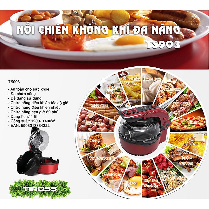 Thiết Bị Điện Gia Dụng > Đồ gia dụng nhà bếp > Nồi chiên không dầu || Nồi nướng chân không đa năng Tiross TS903 - Dung tích 11L - Công suất 1400w - Bảo hành 12 thángCòn hàng