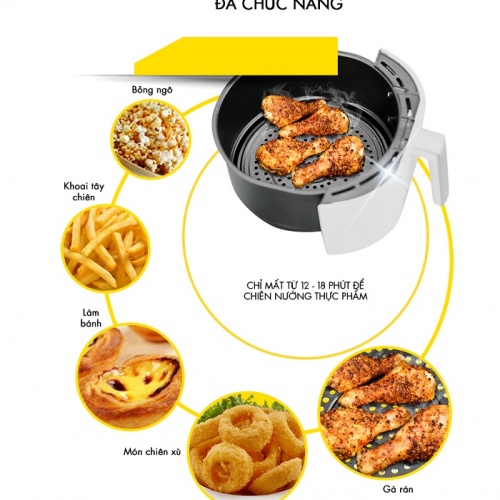 Chức năng : Chiên, nướng các thực phẩm: thịt, cá, rau.....không tốn nhiều dầu