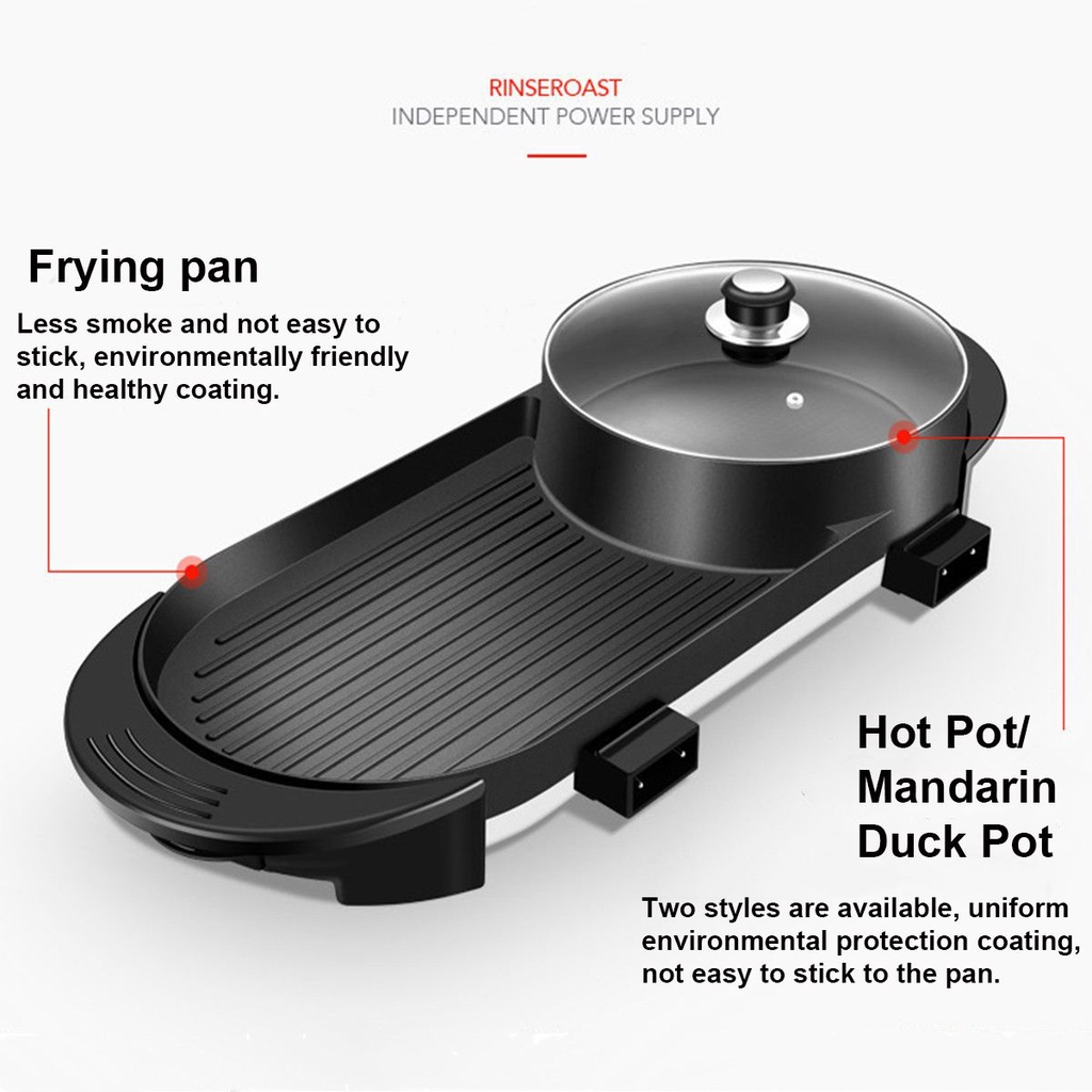 Thông Tin sản phẩm:Tên:Nồi Nướng Lẩu Điện 2 trong 1 Phong cách Hàn Quốc siêu chống dính tiết kiệm điện năng
