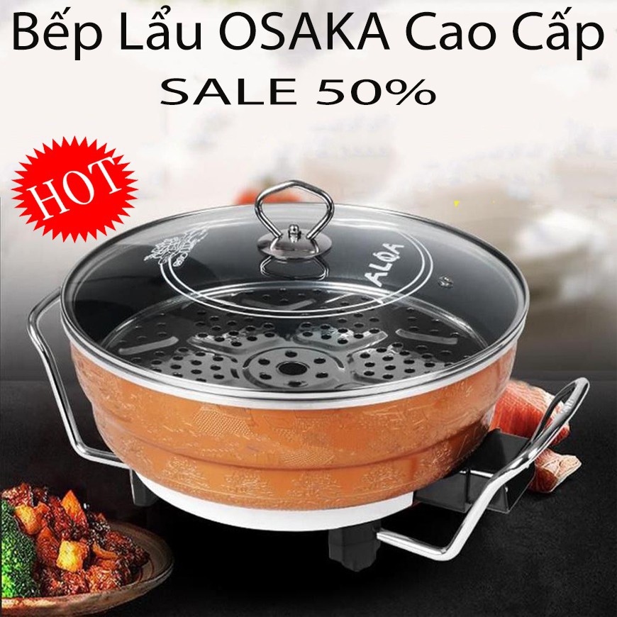 Nồi Nướng Lẩu Điện Đa Năng Osaka Nhật Bản - 5 Tốc Độ Sôi , Nắp Thủy Tinh Trong Suốt + Tay Cầm Chống Nóng Tiện Ích