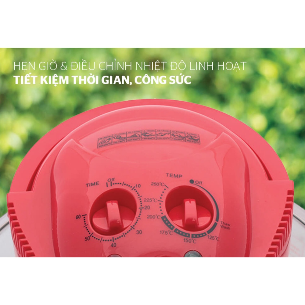 - Sử dụng bóng Halogen tiết kiệm điện năng kết hợp với quạt gió tạo dòng khí luân chuyển nhiệt độ trong lò, giúp thức ăn chín vàng đều không bị cháy khét