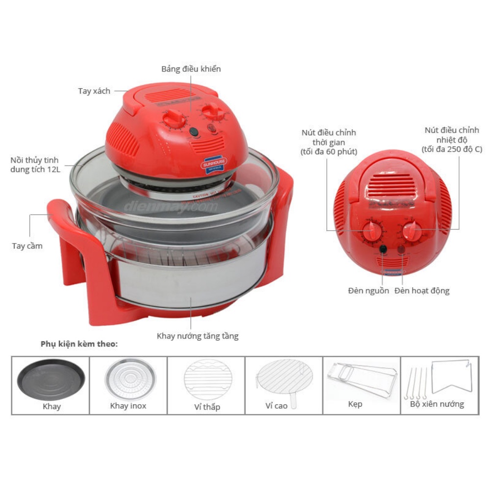 ✅ THÔNG SỐ CHI TIẾT Nồi Nướng Thủy Tinh Sunhouse SH416 💥 FREESHIP 💥 Lò Nướng Dung Tích 12L , Kính thủy tinh Chịu Nhiệt Cao Cấp