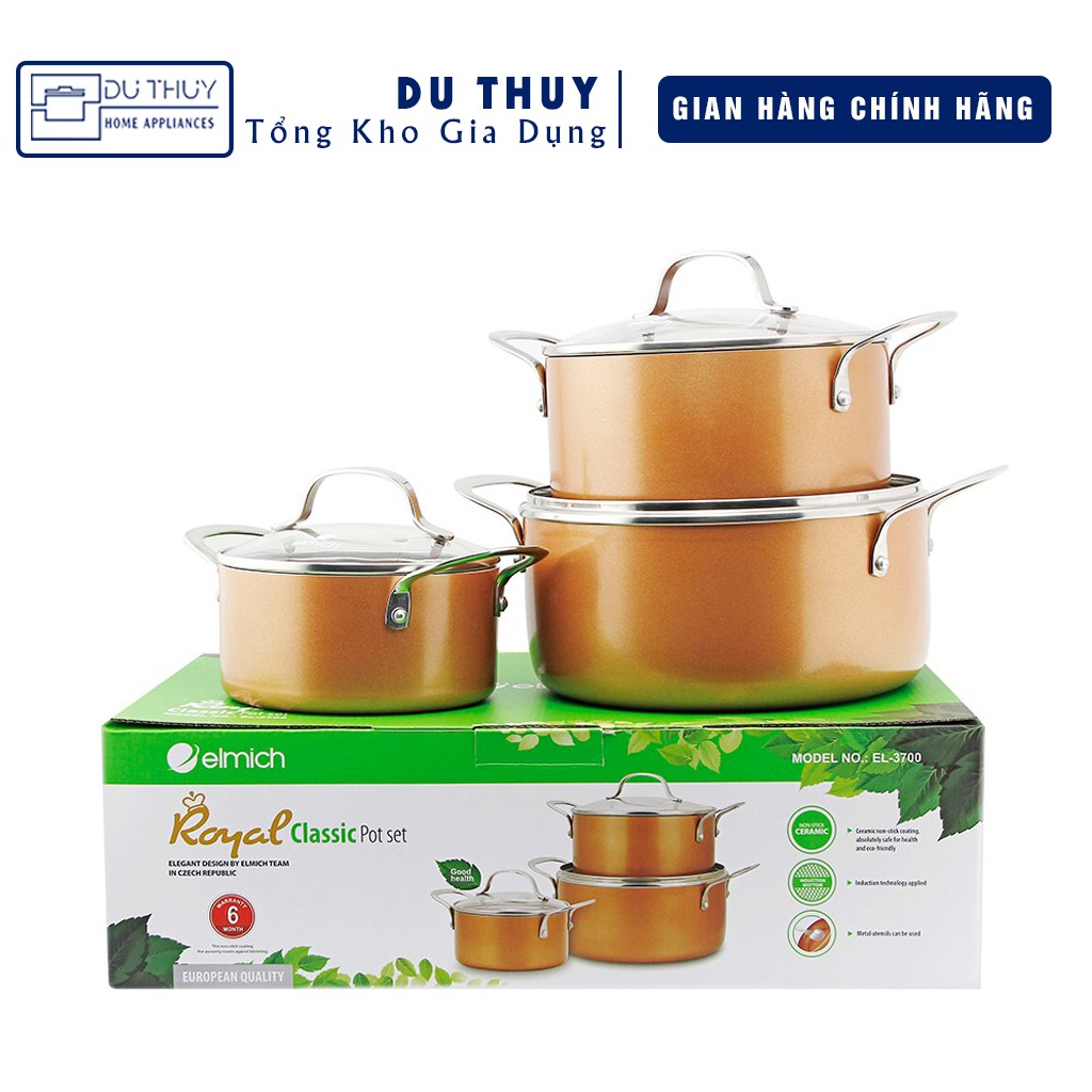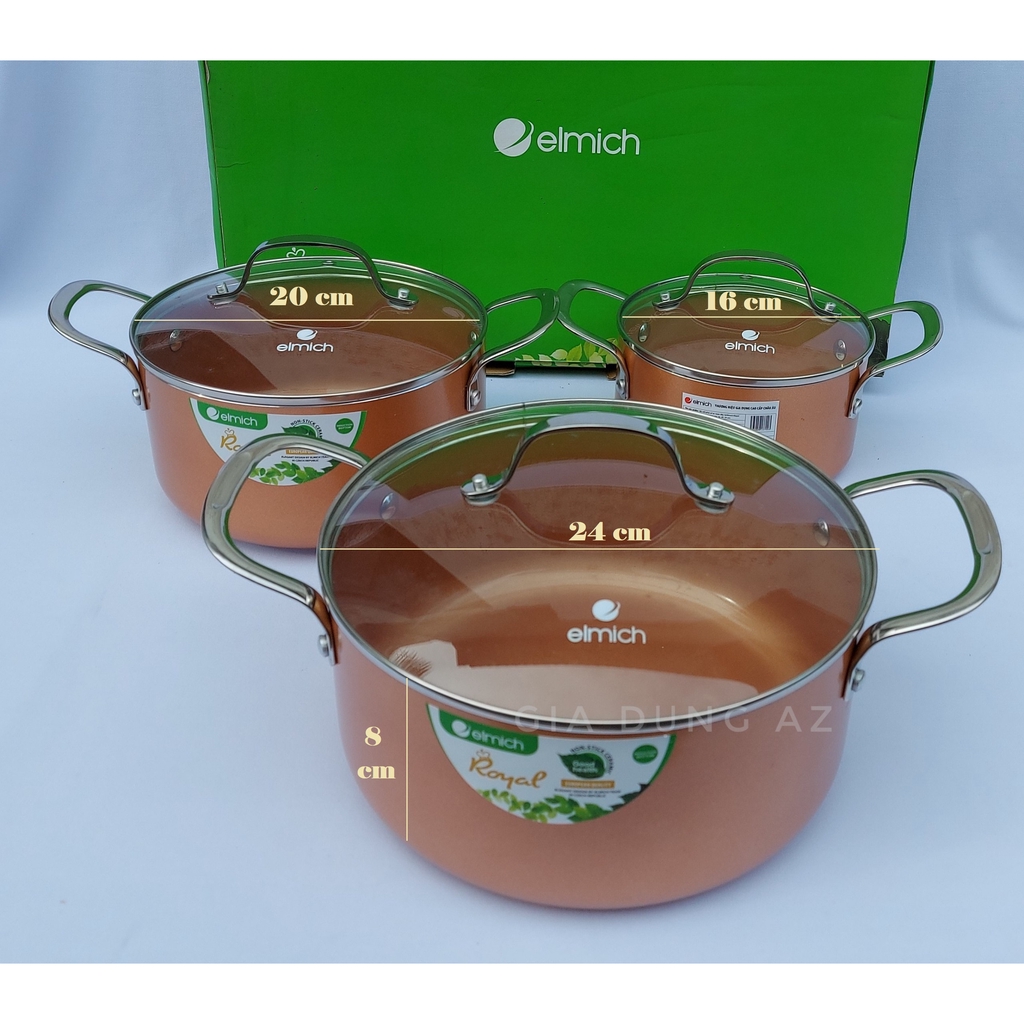 Nhà cửa & Đời sống > Dụng cụ nhà bếp > Nồi || Bộ nồi phủ sứ đáy từ Elmich Royal Classic EL-3700 16-20-24 vung kính chịu lực, phủ sứ tự nhiên 100% dùng được tất cả bếpCòn hàng