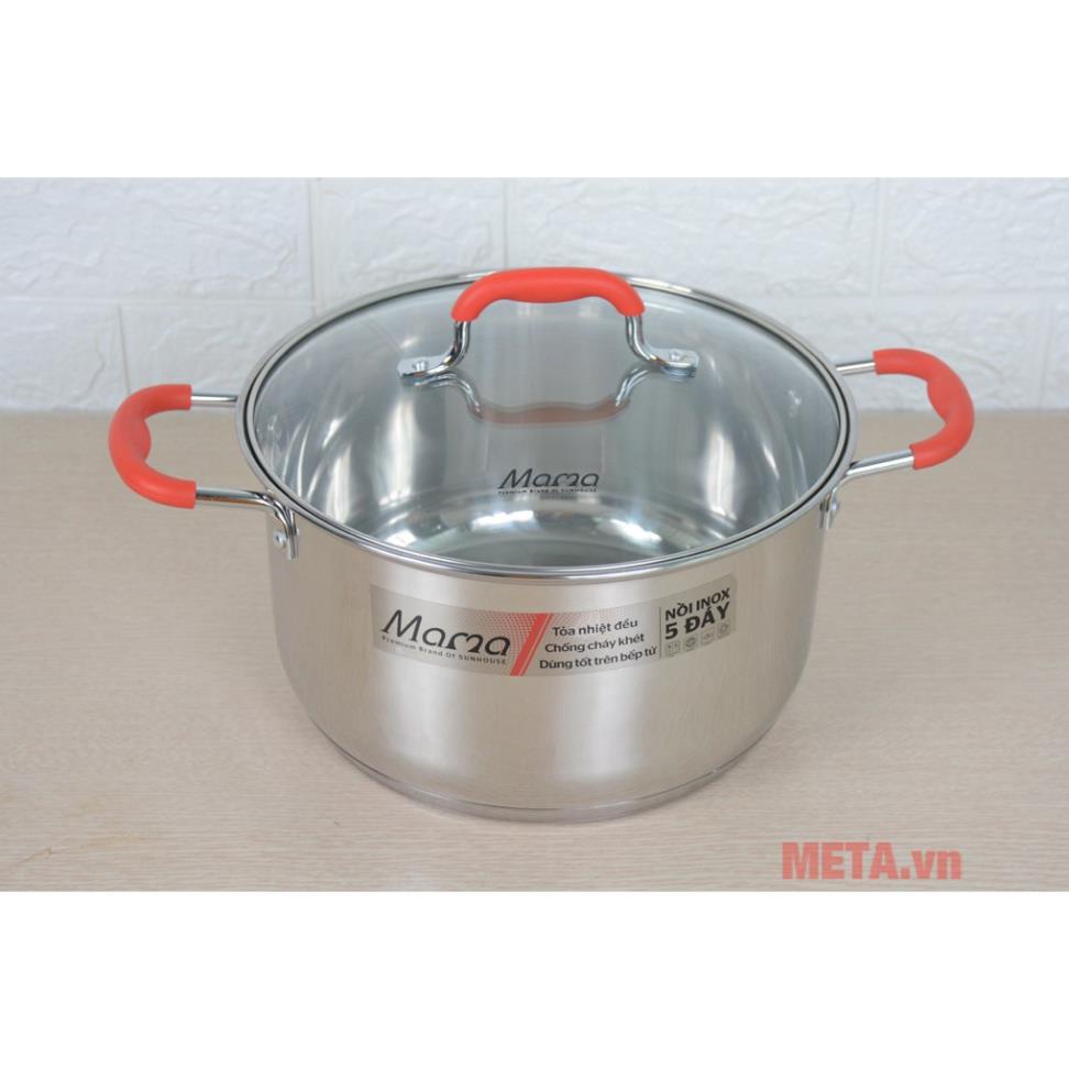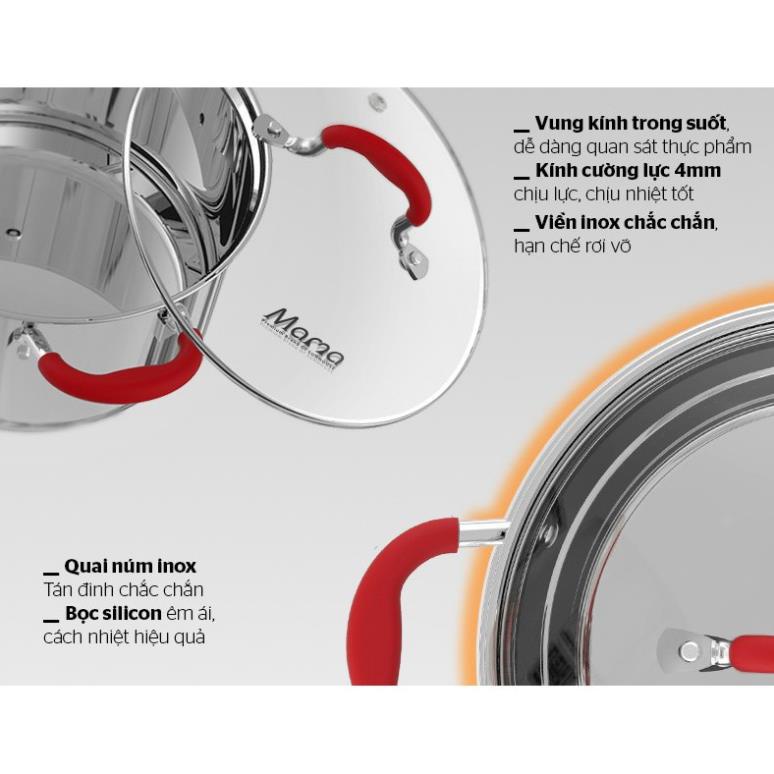 Vung kính cường lực, quai núm inox tán đinh bọc silicon cách nhiệt hiệu quả