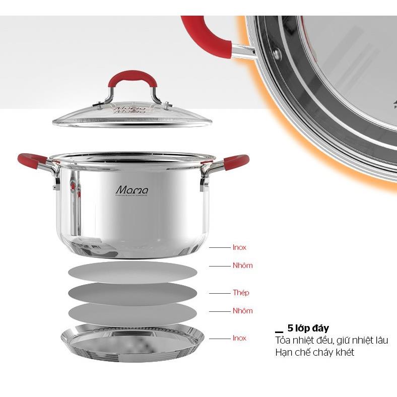 ĐẶC ĐIỂM NỔI BẬT5 lớp đáy tỏa nhiệt đều, giữ nhiệt lâu, hạn chế cháy khét