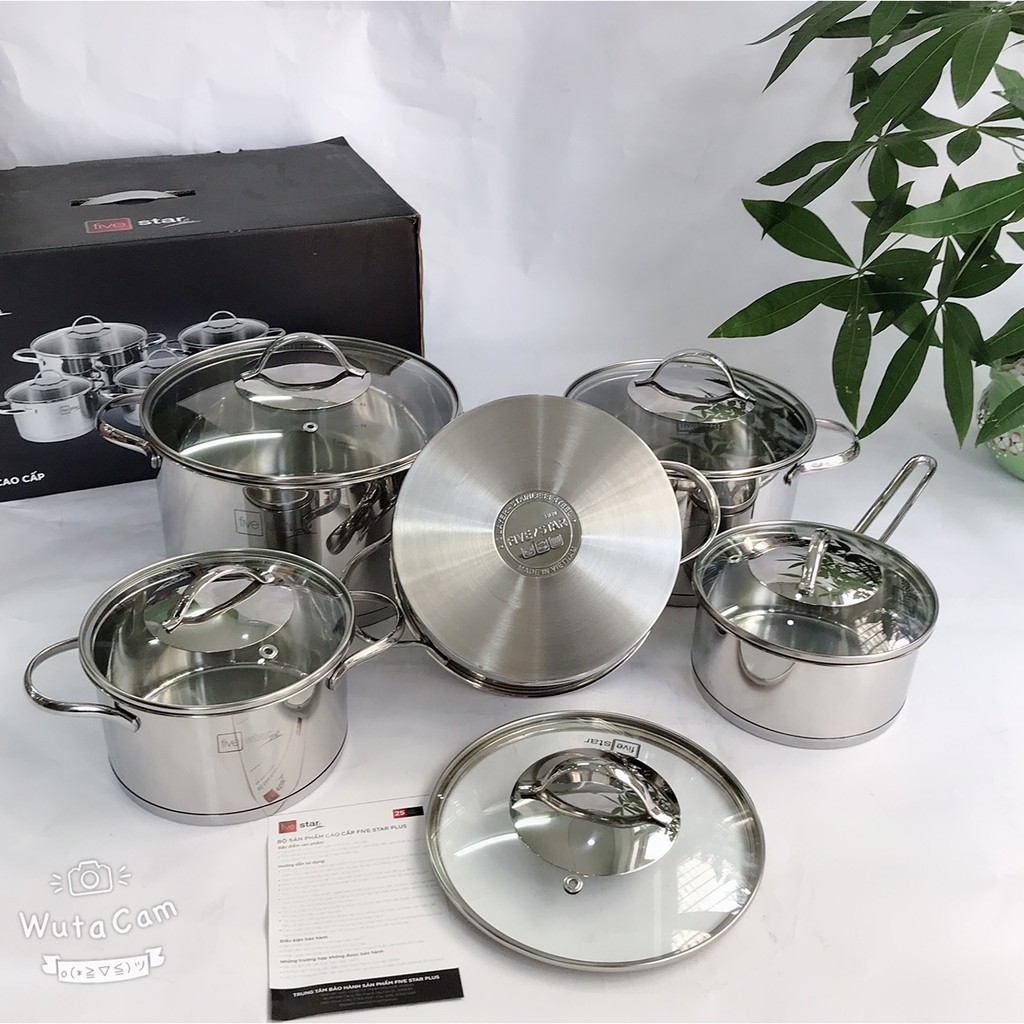 Bộ nồi quánh 3 đáy inox 304 FiveStar Plus kiểu Silit 5 chiếc nắp kính tặng 10 muỗng ăn (quánh16cm xN16cmx2N 20cm x1N24cm