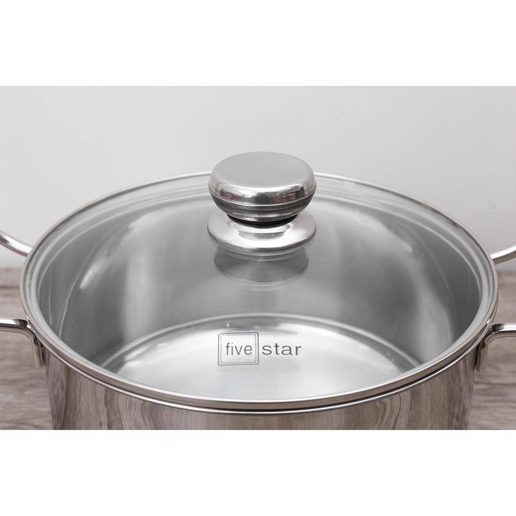 Nồi quánh inox 5 đáy cao cấp Fivestar Plush nắp kính 16cm / 20cm / 24cm inox 430 , dùng được mọi bếp , bảo hành 5 năm