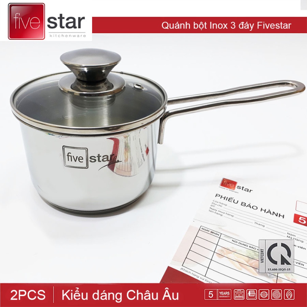 Nhà cửa & Đời sống > Dụng cụ nhà bếp > Nồi || Nồi Quánh Inox Fivestar-3 Đáy-Nắp kính (đùng được bếp từ)-Nồi nấu bột 12-14-16cm,cao cấp,dày,đẹp,chính hãng,giá rẻ-BH 5NCòn hàng