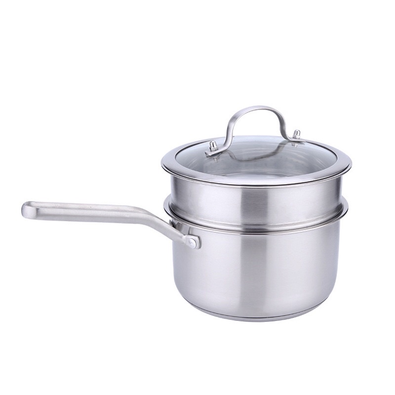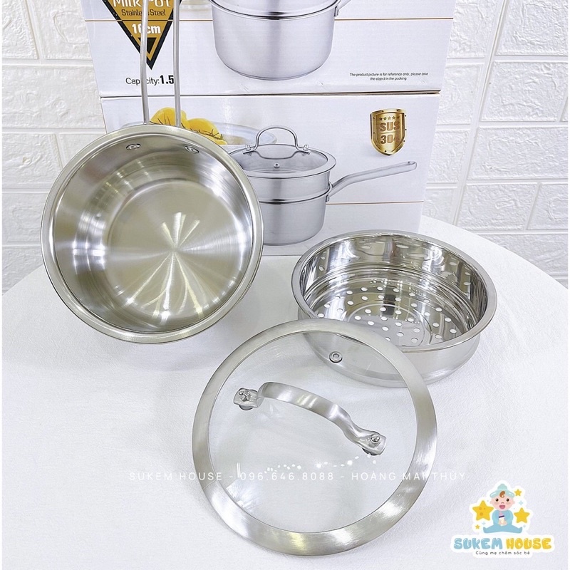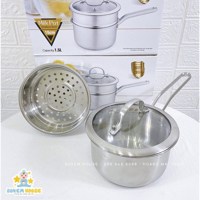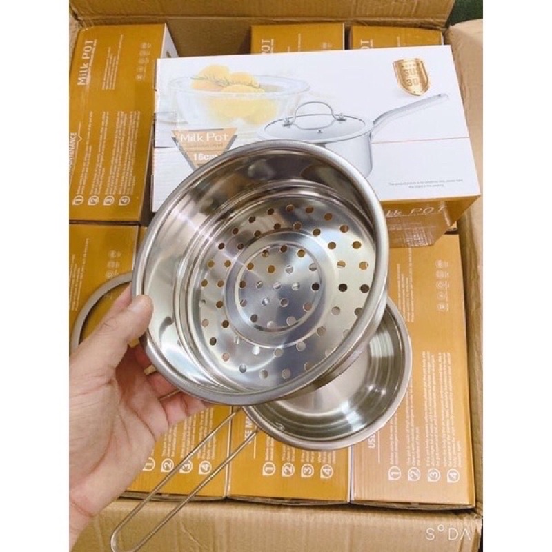 Nồi (quánh) inox Sus 304 Milk Post 16cm kèm xửng nấu cháo, bột bé ăn dặm