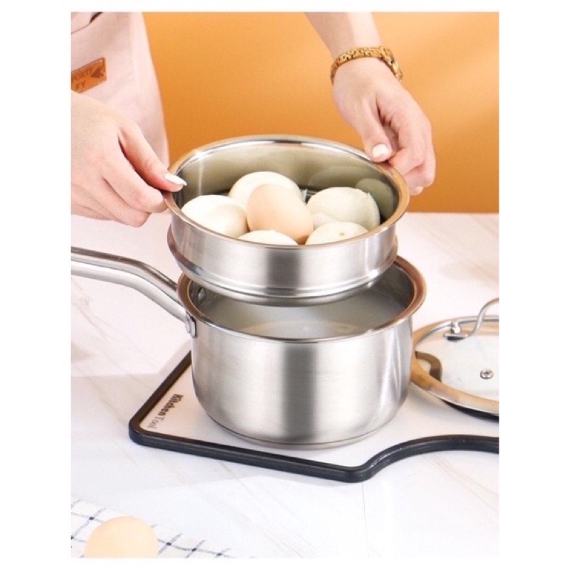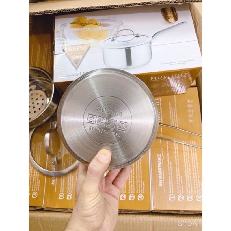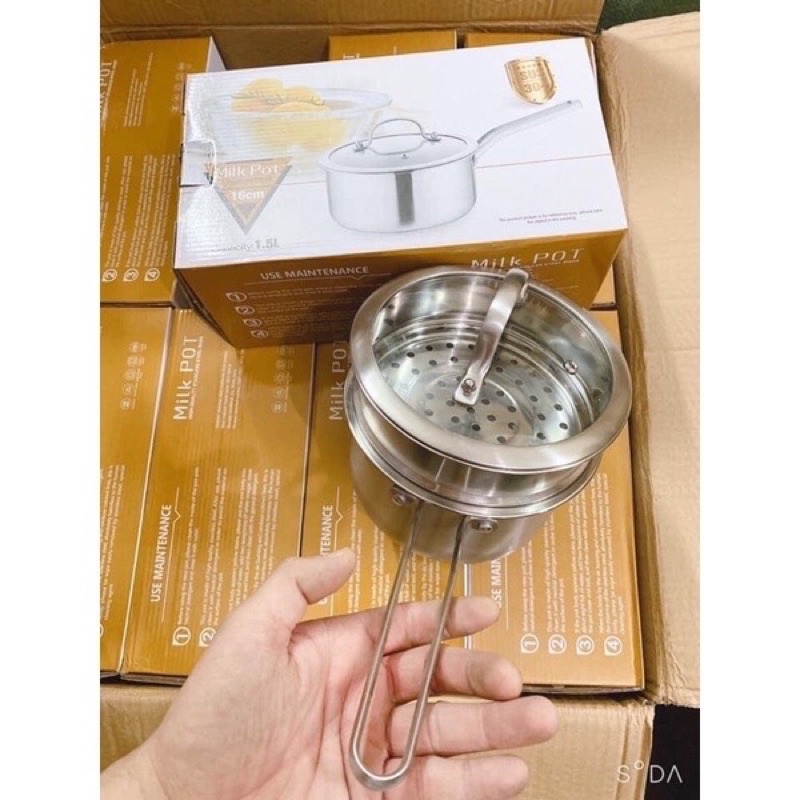 Nhà cửa & Đời sống > Dụng cụ nhà bếp > Nồi || Nồi (quánh) inox Sus 304 Milk Post 16cm kèm xửng nấu cháo, bột bé ăn dặmCòn hàng
