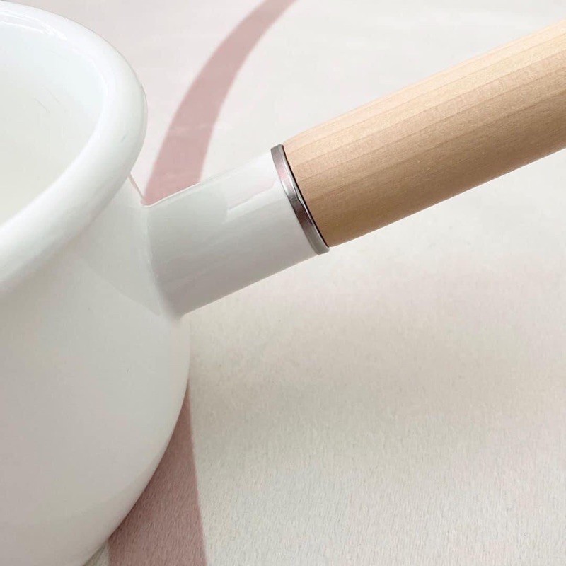 👍Nồi siêu nhẹ, màu trắng basic và sạch sẽ, dễ vệ sinh. Nồi có phối tay cầm bằng gỗ nên trông càng đẹp mắt. Bề mặt gỗ cũng tăng ma sát giúp ba mẹ cầm chắc tay