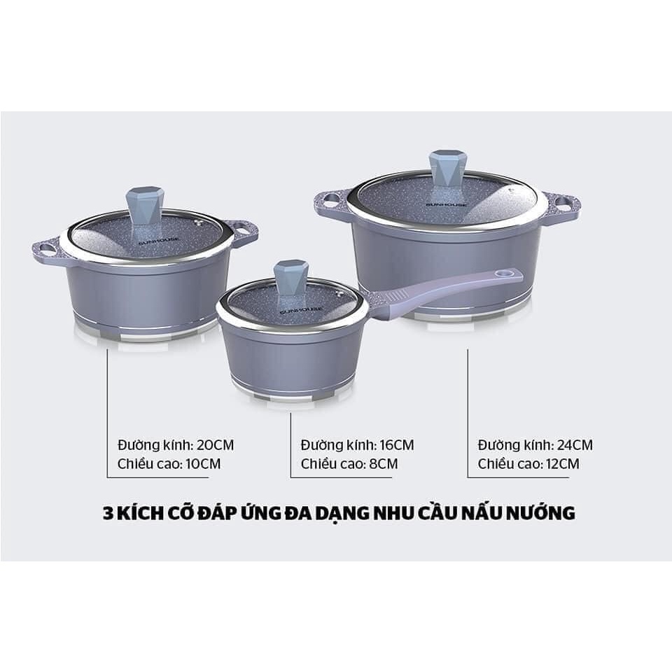 Bộ nồi, quánh vân đá Sunhouse Mama đáy từ, dùng được bếp điện từ, mã SHG2003MMA (có bán lẻ nồi/quánh)