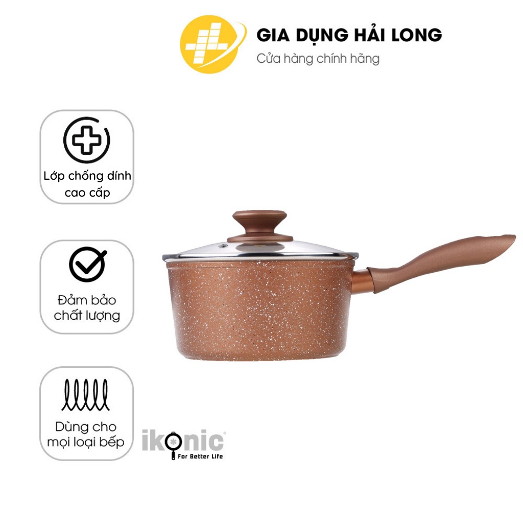 Nhà cửa & Đời sống > Dụng cụ nhà bếp > Nồi || Nồi quấy bột bằng nhôm phủ vân đá nắp kính cường lực IKONIC IK6816 - 16CM dùng cho bếp gas và bếp hồng ngoạiCòn hàng