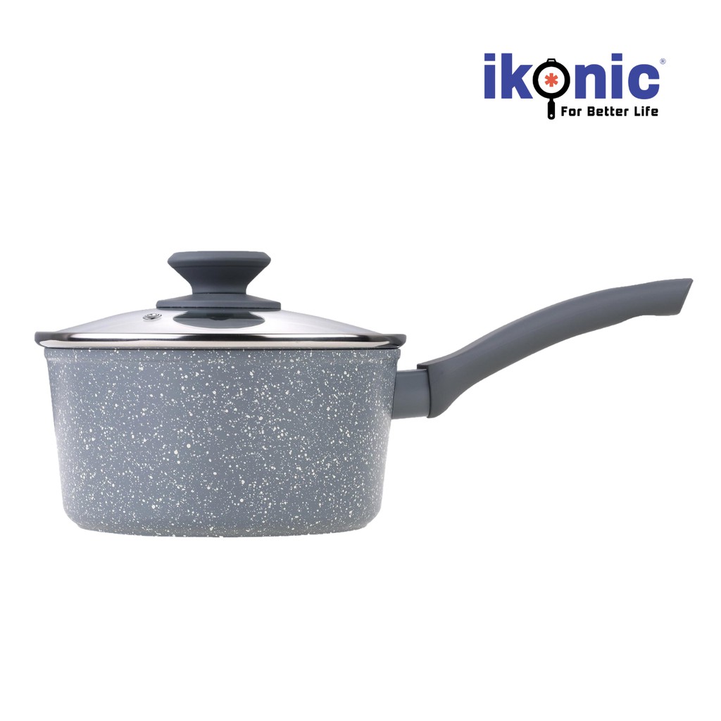 Nồi quấy bột bằng nhôm phủ vân đá nắp kính cường lực IKONIC IK6816 - 16CM dùng cho bếp gas và bếp hồng ngoại