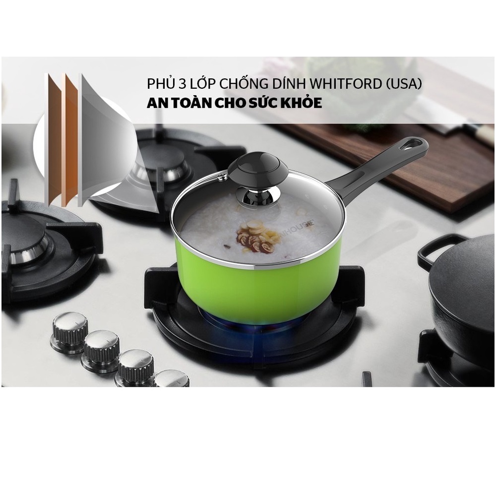 • Lòng nồi phủ chống dính Whitford, an toàn cho sức khỏe cho bé.