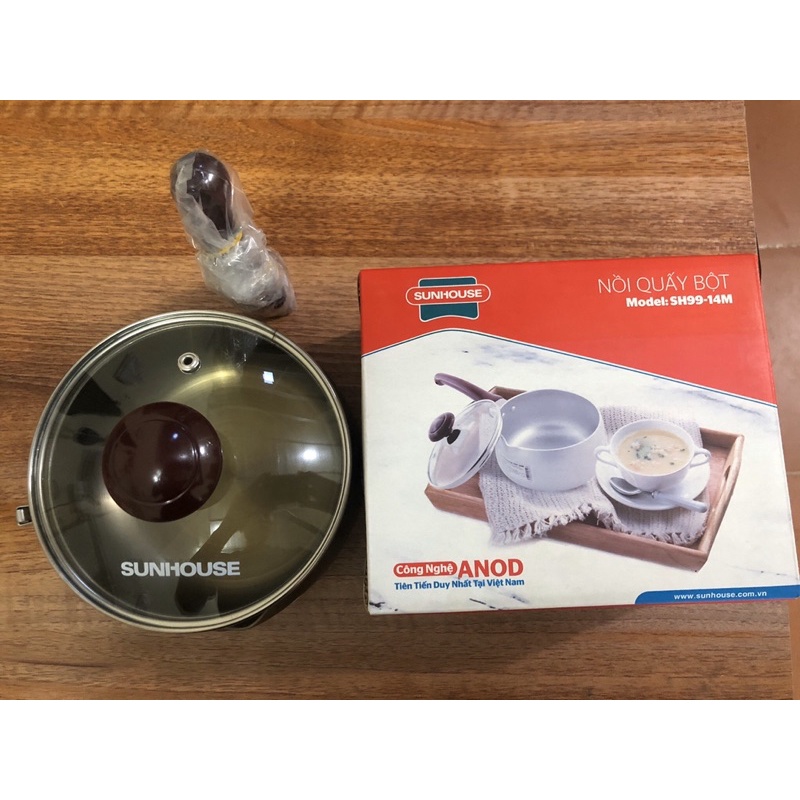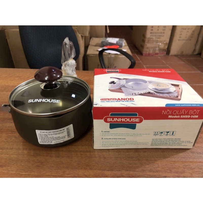 * Nồi quấy bột chống dính SunhouseCông nghệ ANODIED (điện phân các anod) là quá trình làm oxy hóa bề mặt của những tấm nhôm tạo thành một lớp vỏ bọc cứng thay cho lớp nhôm thông thường ở bề mặt tấm nhôm - kết quả cho ra một liên kết nhôm cực mạnh gọi là nhôm Anod. Nhôm Anod có thể cứng gần bằng kim cương và được ứng dụng rất nhiều trong ngành công nghiệp sản xuất ô tô, máy bay, vi tính…